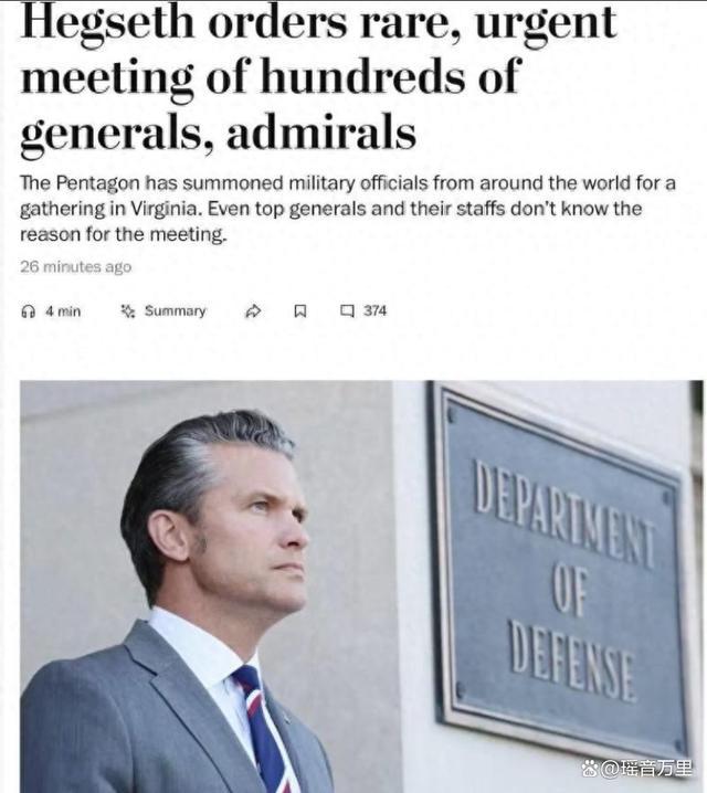 近日,美国国防部的一纸密令引发全球关注:分散在全球各地的近千名美军高级将领被要求火速赶往弗吉尼亚州海军陆战队基地。这场“极不寻常”的紧急集结,瞬间引爆国际舆论,有人猜测美军即将发动大规模军事行动,也有人认为这是美国内部权力斗争的信号。那么,这场集结究竟意味着什么?是战争前兆,还是内部动荡的体现?