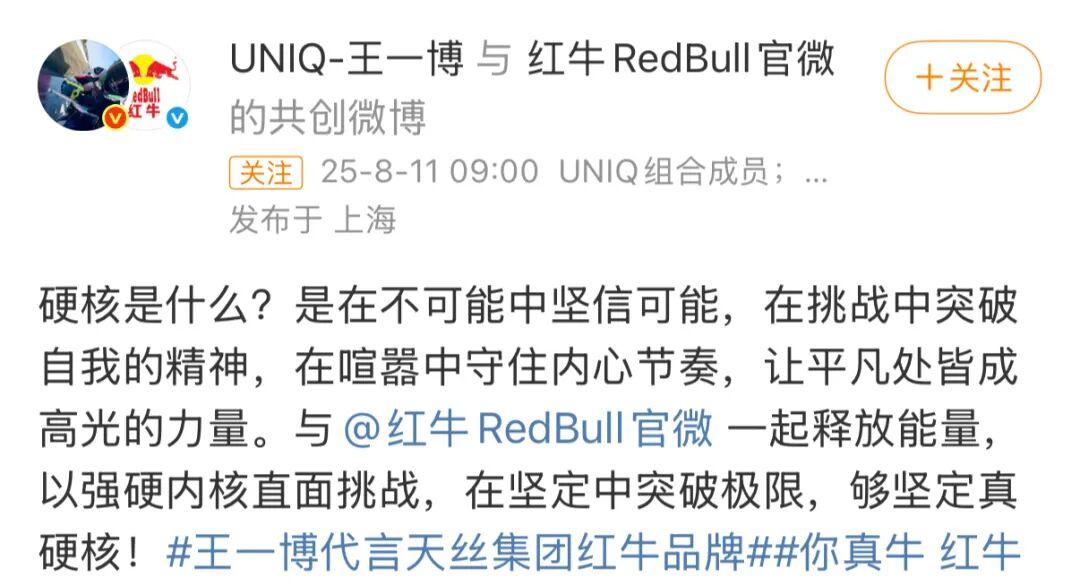 这种金字塔式的代言很聪明,既不会降低艺人的商业价值,还能通过日常感和亲民感强化成毅的“接地气”属性,也是现在顶流们的另一种商业思路。