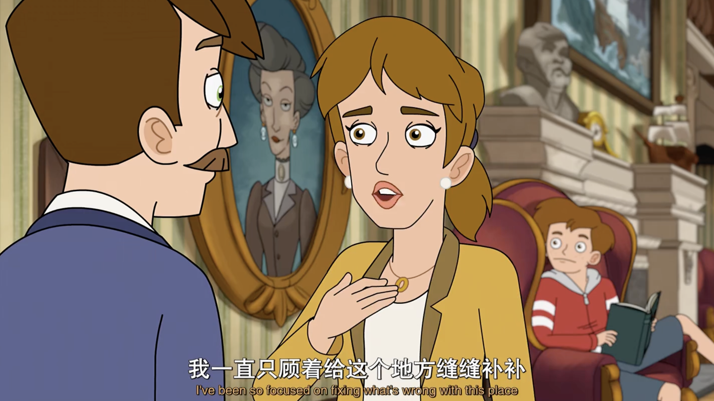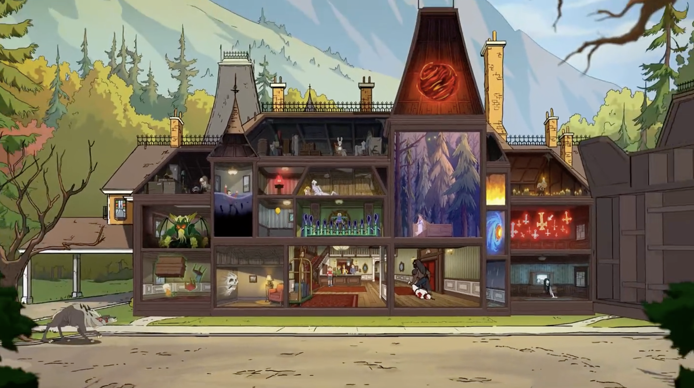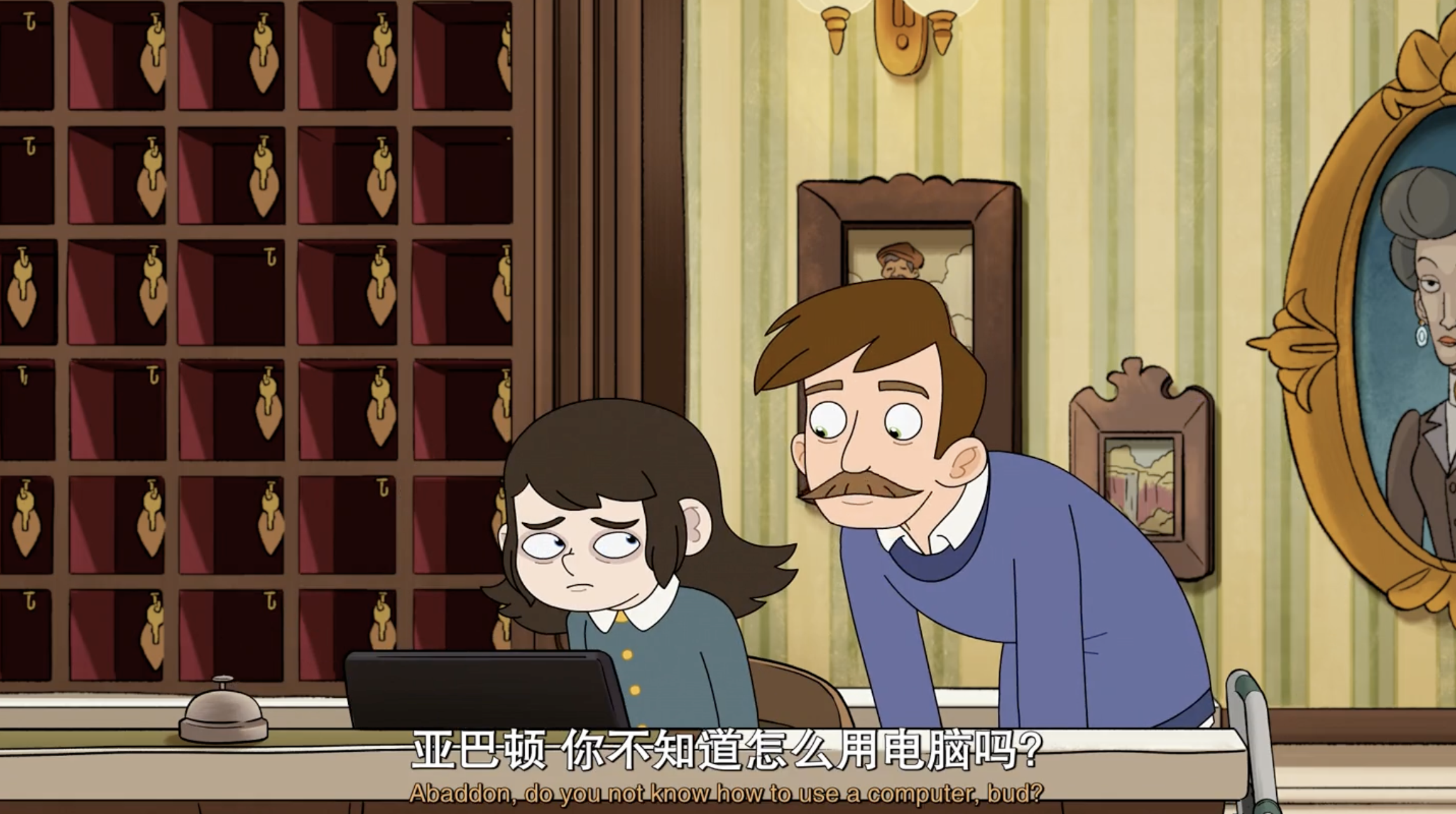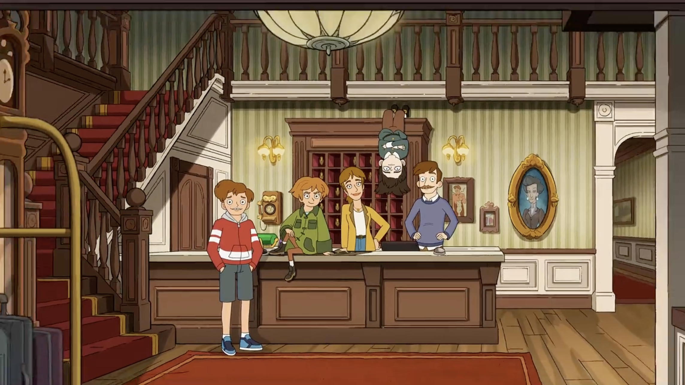 剧集采用明快生动的画风,色彩搭配充满活力,构建出既神秘又温馨的视觉世界。故事主线围绕单亲妈妈Katherine展开,她继承了兄长Nathan濒临倒闭的酒店,与拥有特殊能力的儿子Ben和鬼马少女Esther共同经营这个特殊场所。剧中每个角色都充满个性:Ben作为能与鬼魂沟通的“灵魂导体”在学校饱受排挤,Esther则以驱魔师身份与鬼魂斗智斗勇,而酒店常客——被困在孩童身体的恶魔Abaddon,更是为故事增添了奇幻色彩。