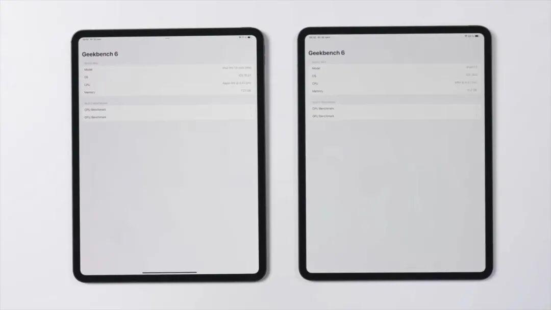 在系统方面,搭载M5处理器的iPad Pro出厂系统已升级至iOS26,而M4版本则依然运行iOS18.3.1。性能测试方面,两款iPad Pro在GeekBench6中的CPU跑分结果如下:M4版本单核3748分,多核13324分;M5版本单核4133分,多核15437分,性能提升显著。
