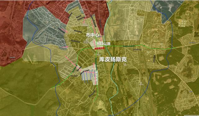在库皮扬斯克方向,俄军终于打穿了市中心,攻到了H26公路以南,战斗已蔓延至希穆希纳街以南。与此同时,城西的俄军也再次突破H26公路,大面积杀入市南,一直推到学生大街,并沿该街向南推进了约1公里。这波进攻横跨7个街区,就像一把锤子砸进了市南。这不仅让俄军彻底切断了H26公路,还有机会反包围市中心的乌军。截至目前,整座城市的三分之二以上都在混战中。