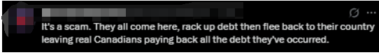 有人愤怒:“这就是个骗局。印度人来到这里,欠债累累,然后逃回自己的国家,留下真正的加拿大人来为他们欠下的债买单。”
