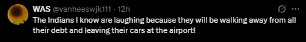 “我认识的印度人都在笑,他们会欠下很多债,然后把车停在机场走人。”