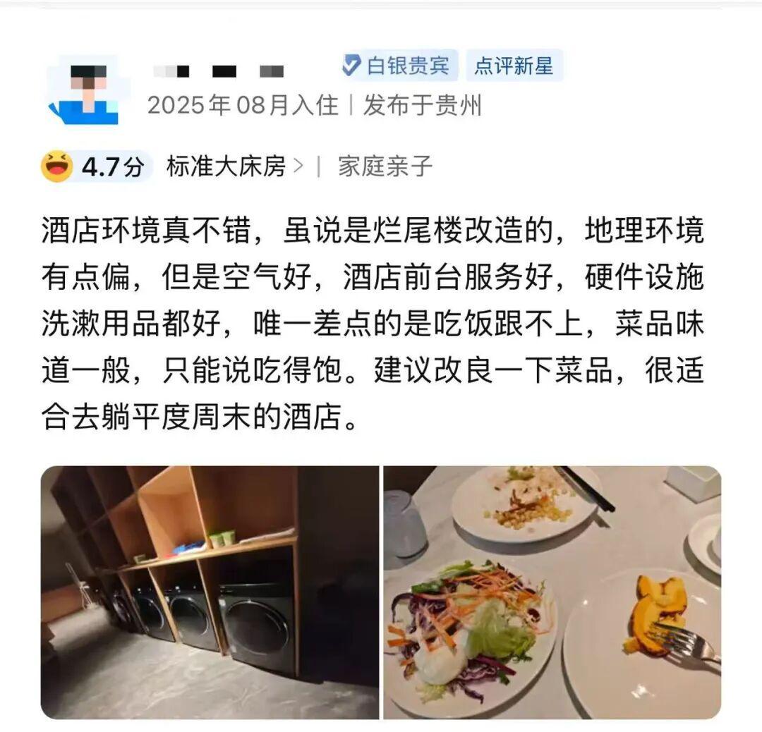 在携程平台上,紫林山豪利维拉酒店被列为“独山豪华酒店榜”的第一名。在308条住客评价中,有游客表示,听说该酒店是由“天下第一水司楼”改造而成,特地前来体验。也有住客评价称,虽然酒店地理位置有些偏僻,但服务和硬件设施都非常出色,只是建议酒店能够改良一下菜品。