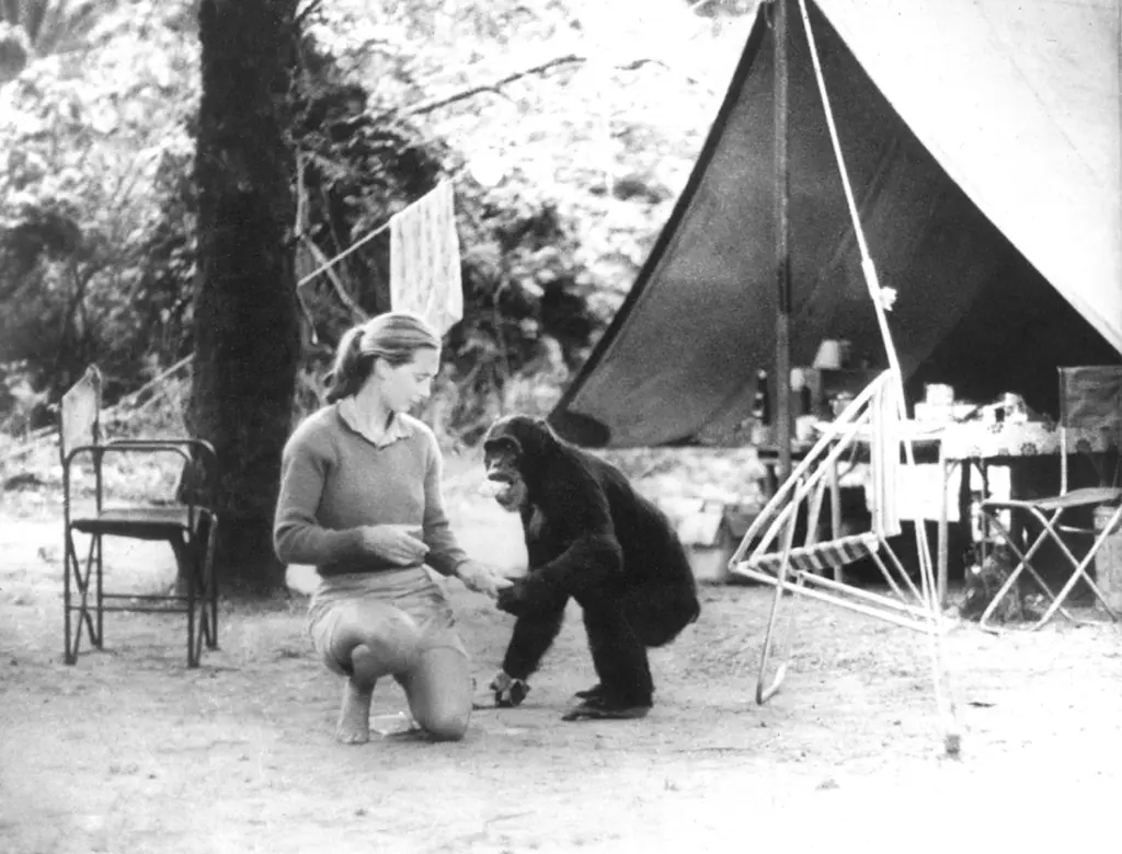 时间回溯至1960年,年仅26岁的古道尔以动物行为学家的身份,独自前往坦桑尼亚贡贝溪国家公园,开启了对野生黑猩猩的开创性研究。她的发现震惊世界:黑猩猩不仅会制造和使用工具,还具备复杂的社交行为与个性特征。这些研究彻底颠覆了‘人类是唯一工具使用者’的认知,重新定义了人类与动物的关系边界。