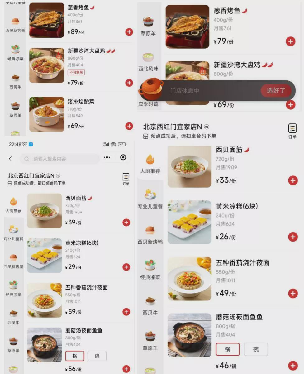 图片来源:西贝小程序菜单昨日和今日截图对比