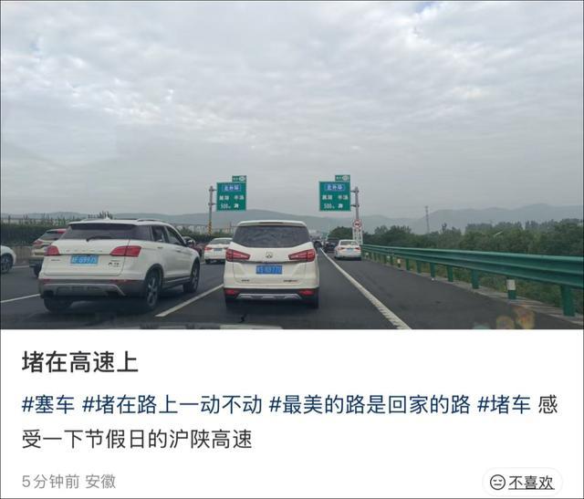 “回回堵的都是同一批大聪明……前年十一,30晚上8点出发,堵;去年十一,凌晨4点出发,堵;今年十一,凌晨3点出发,堵……你们猜我明年十一几点出发?”