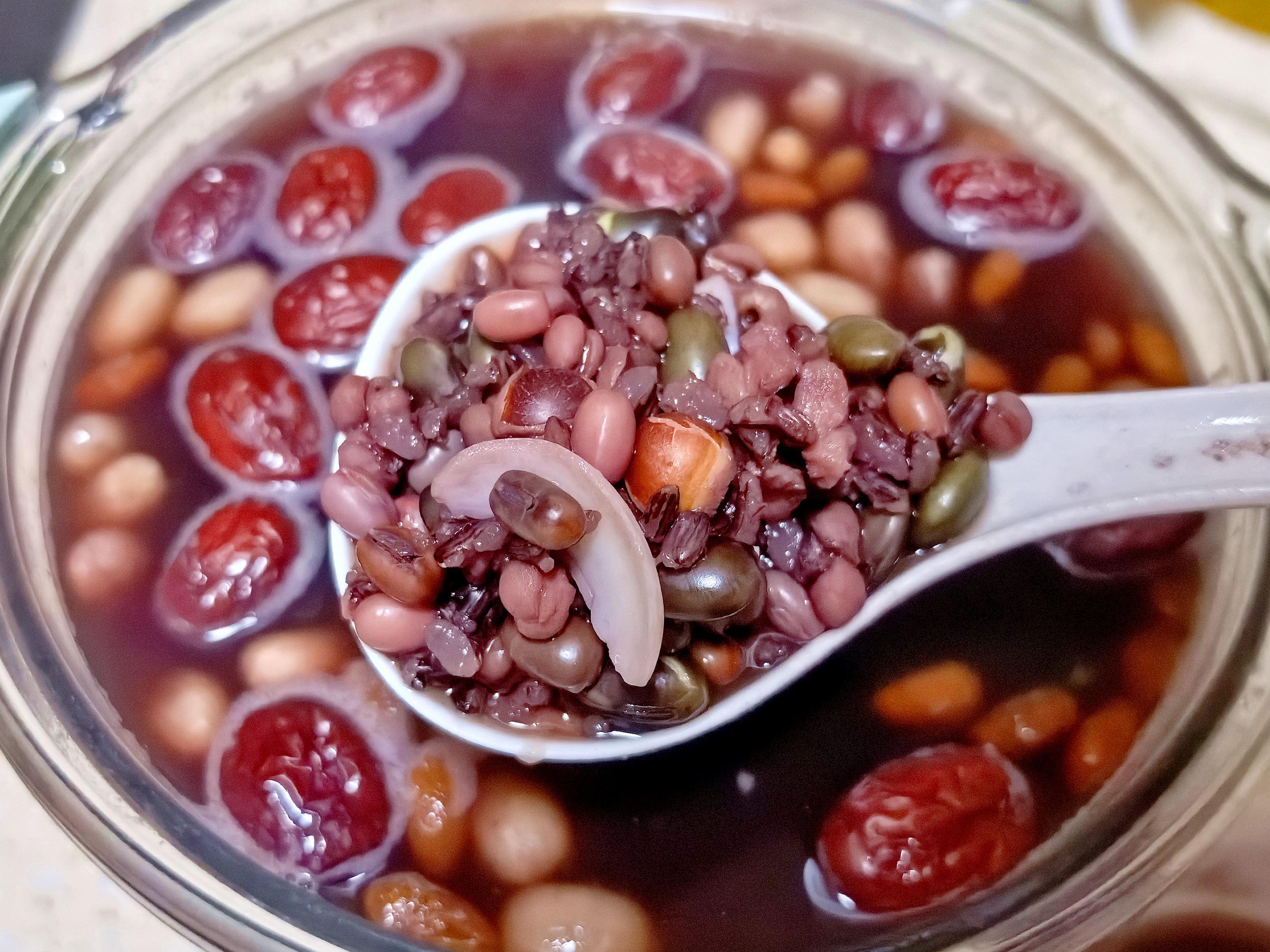 红小豆、黑豆、绿豆各20克,薏米15克,大米50克,红枣4颗