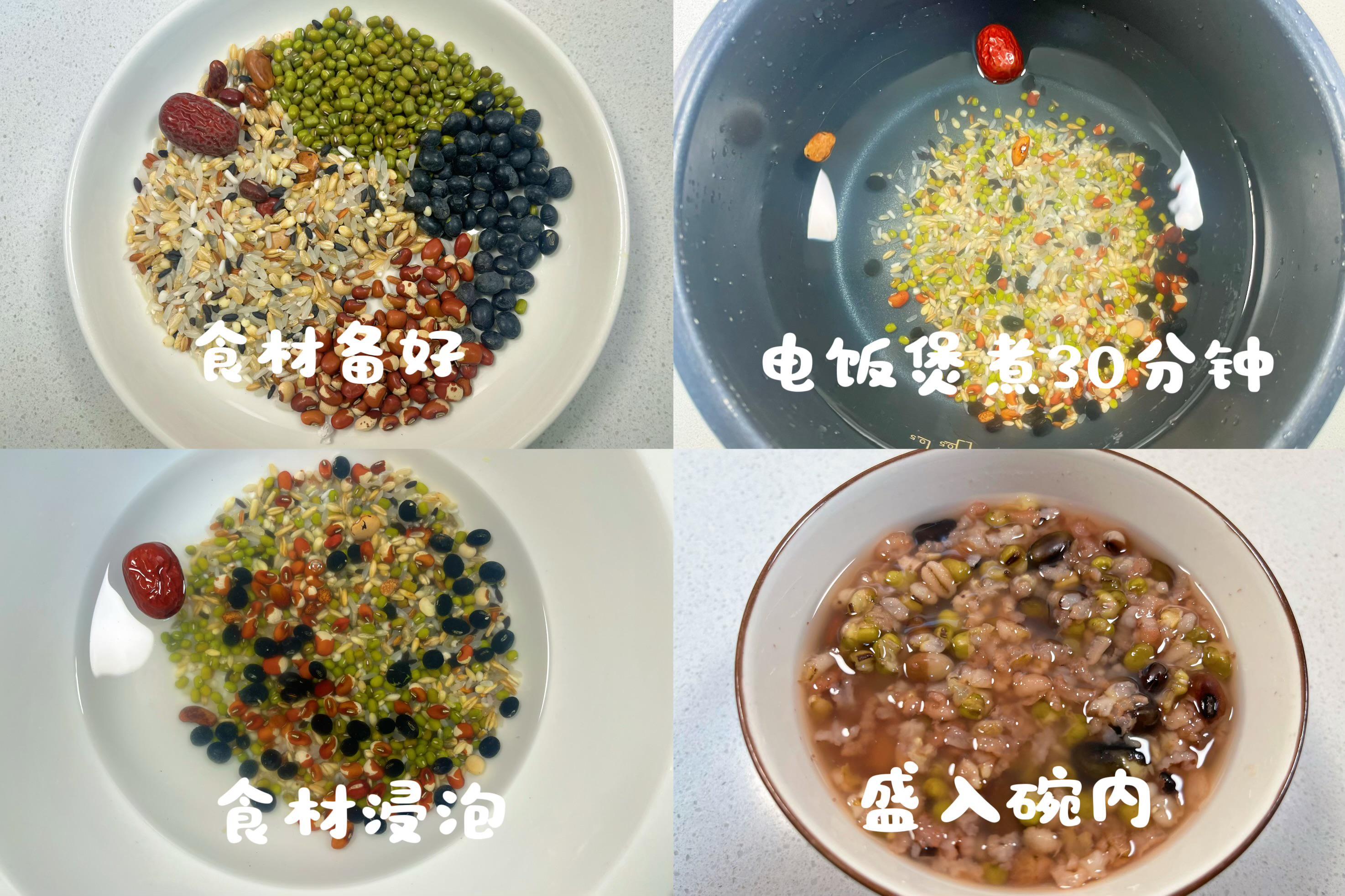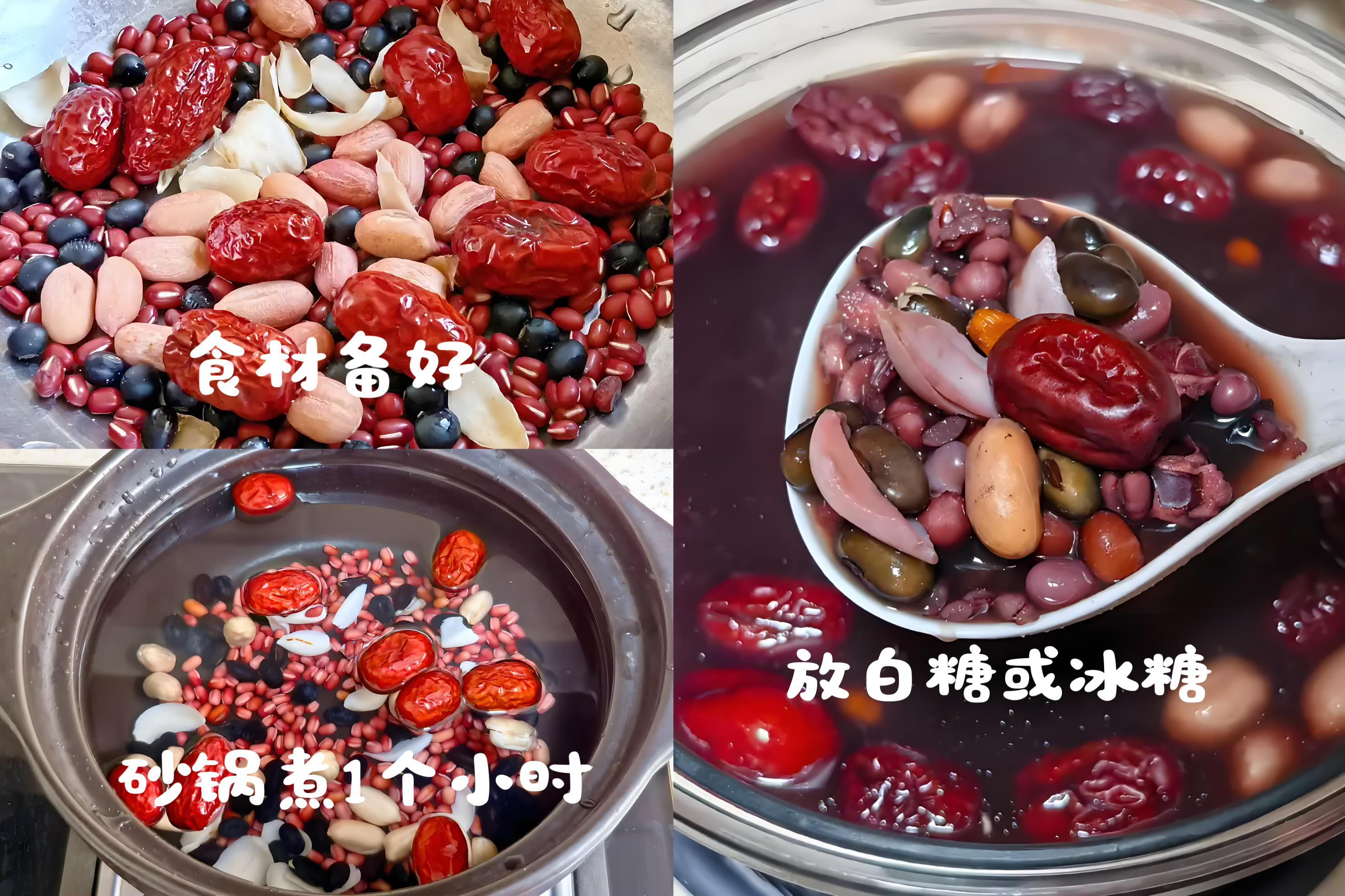 1. 红小豆、黑豆、花生提前浸泡2小时以上(缩短熬煮时间)