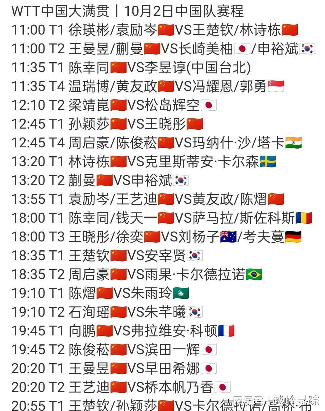 北京时间10月2日,乒乓球WTT中国大满贯赛事正式进入正赛第五个比赛日。这一天,赛事将迎来多个关键节点的对决,包括单打八强的产生、男双和女双四强的归位,以及混双决赛席位的争夺。在这场激烈的竞技中,国乒选手王楚钦成为唯一一位需要三线作战的运动员,其体能与意志力将面临严峻考验。