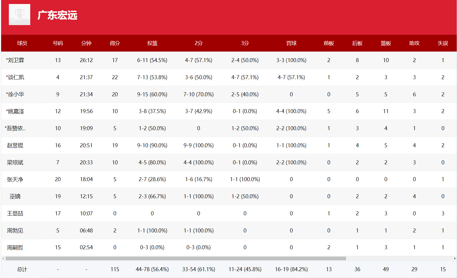 赵昱锟的表现堪称惊艳,他在仅20分51秒的出场时间内,10投9中,三分球1中0,罚球1中1,高效拿下19分5篮板4助攻1抢断,命中率高达90%,两分球更是9投9中,展现出了极高的进攻效率。