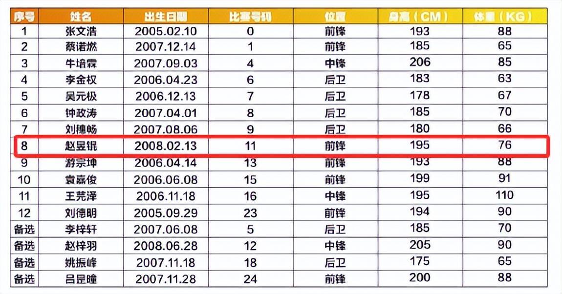 2023年,赵昱锟代表广东青年队参加耐高比赛时,身高还只有1.95米。然而,短短两年时间,他就长高了足足8厘米,如今身高已达到2.03米,成为广东青年队锋线上的超级大杀器。