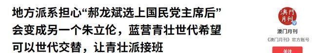 “世代交替”的话题并非新鲜词,但在这次选举中被炒到了顶点。基层民众对派系分赃的旧痛抱怨不已,他们看到郑丽文四十多岁的年纪,便认定她比那几位男候选人更贴近普通人。