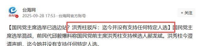 原本外界以为朱立伦能够稳稳当当推动郝龙斌上位,然而局势却急转直下。几句关键话语,便让整个局面彻底翻转,就连蓝营老将洪秀柱也被逼得公开站出来澄清。一时间,所有媒体纷纷登门,等待她开口表态,只为给深蓝阵营一个明确交代。