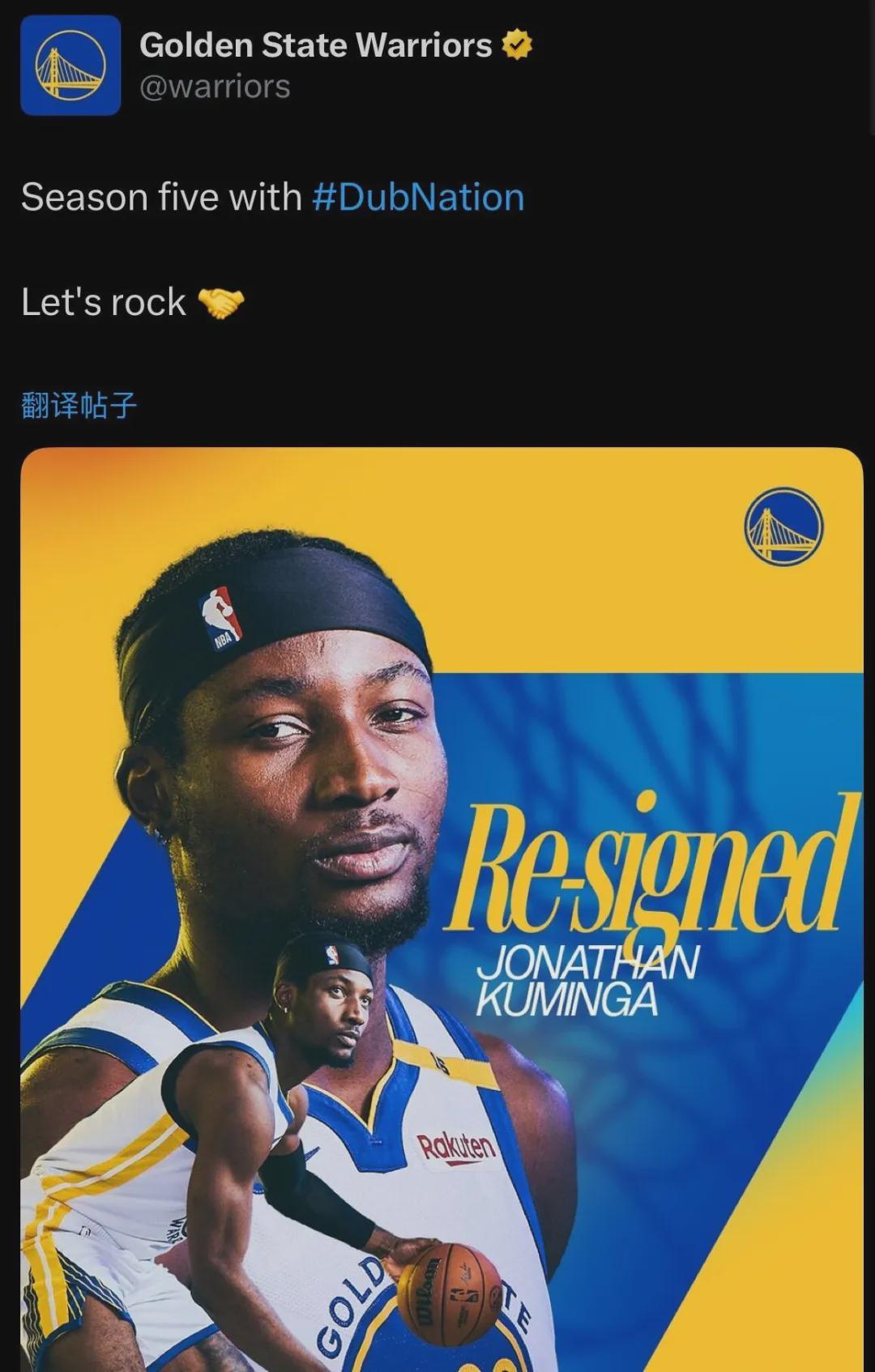 库明加的这份新合同包含了球队选项,并且他放弃了交易否决权。这意味着,等到明年一月中旬冷冻期结束后,库明加将再次被摆上交易货架,成为勇士队调整阵容的重要筹码。