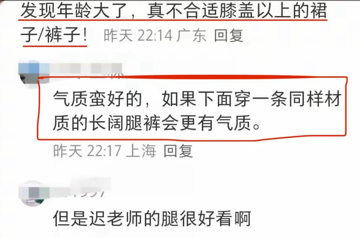 这一身穿搭在网络上激起了不小的讨论。很多人认为,人年龄上来后,要讲究得体,露不如遮、艳不及雅,什么年龄就要有什么年龄的样。