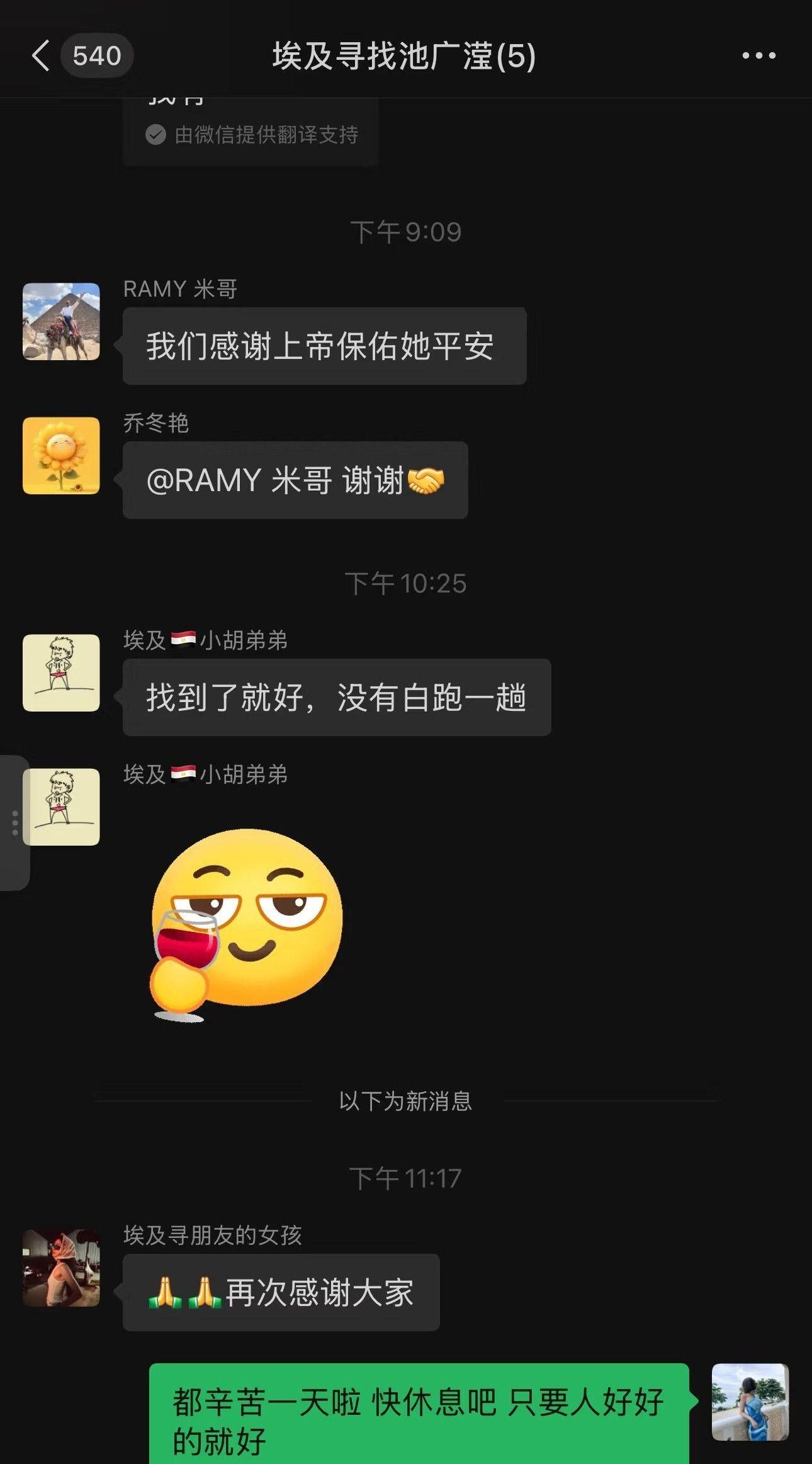现在池广滢已经被埃及警方控制了,那些被她盯上的亲友,总算松了口气。