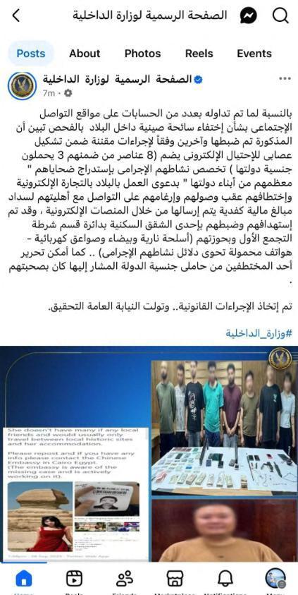 她和其他7人组成了犯罪团伙,在埃及以从事电子商务工作为名,诱骗同胞来上班,等到受害者抵达之后,便实施绑架,逼迫受害者和家人联系交付赎金。