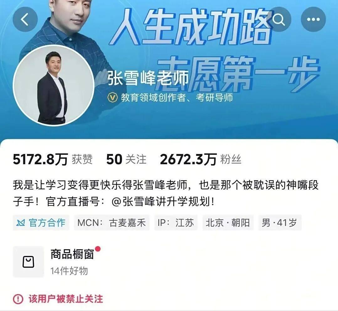 张雪峰多个账号被禁止关注,全网粉丝超4100万,工作室回应正在反省|齐鲁壹点