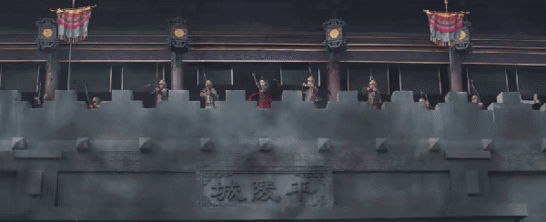锦绣第一女射手付一笑(李沁饰)一身红衣立于城楼之上,屏息凝神,弯弓一箭,
