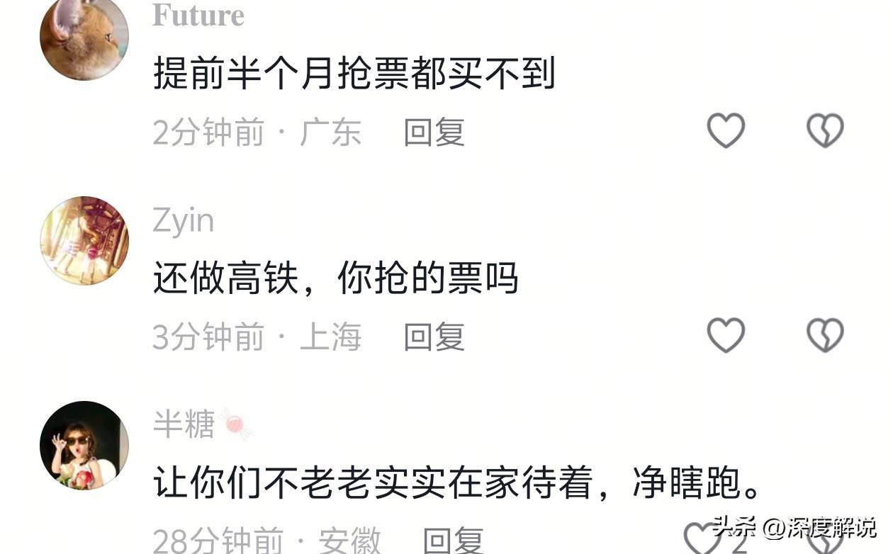 事实上,几亿人次的客流量让车票开售即被抢光,没有买到票的人大有人在。那些没买到票的网友,只能心疼自己的8天假期了。