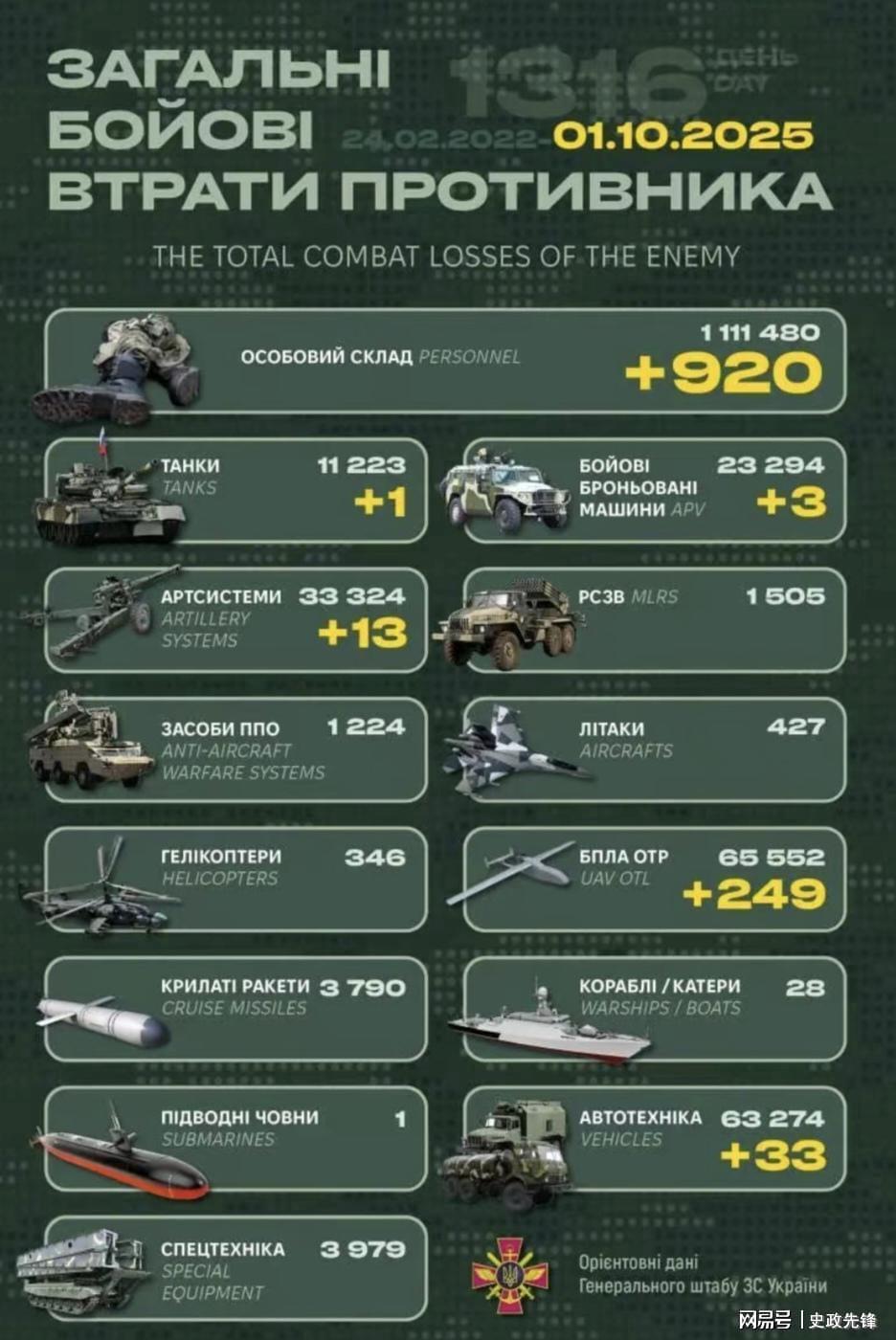 9月30日,乌军“复仇女神”营在扎波罗热和卢甘斯克两个地区表现出色,共摧毁了4门高丽170毫米“谷山”大炮。同日,乌军特种部队还成功摧毁了克里米亚一座S400雷达站,展现了强大的打击能力。此外,乌军无人系统部队司令布洛夫迪通报称,该部队9月份共毙伤敌军6628人,较8月增长了23.5%,其中414旅表现最为突出。