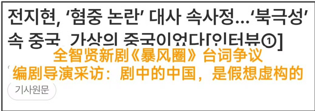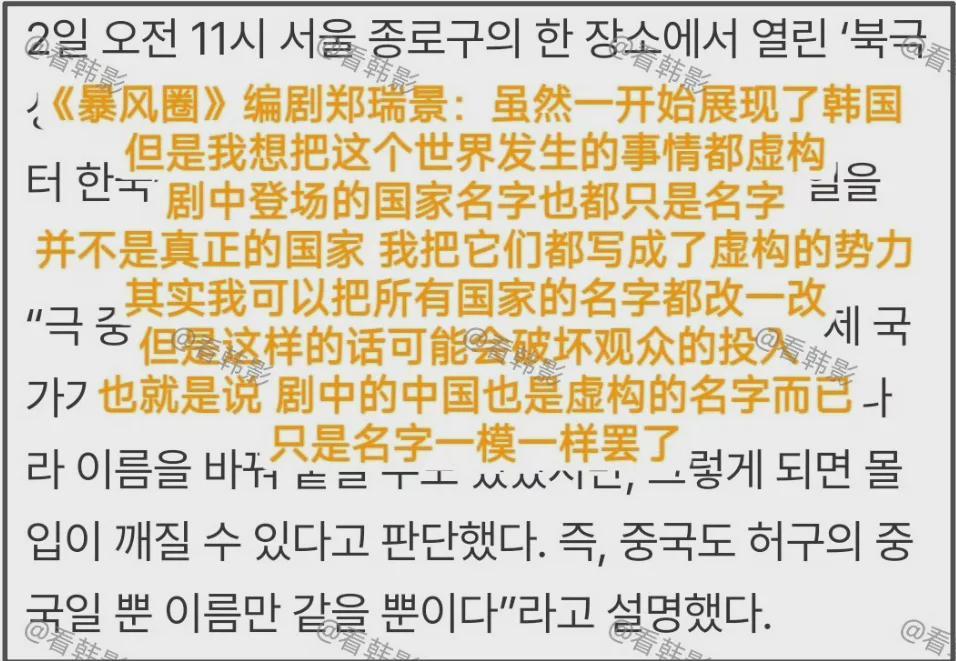 谁不知道《暴风圈》的背景是虚构的?但需要认清现实的,明明是你们韩国人吧。