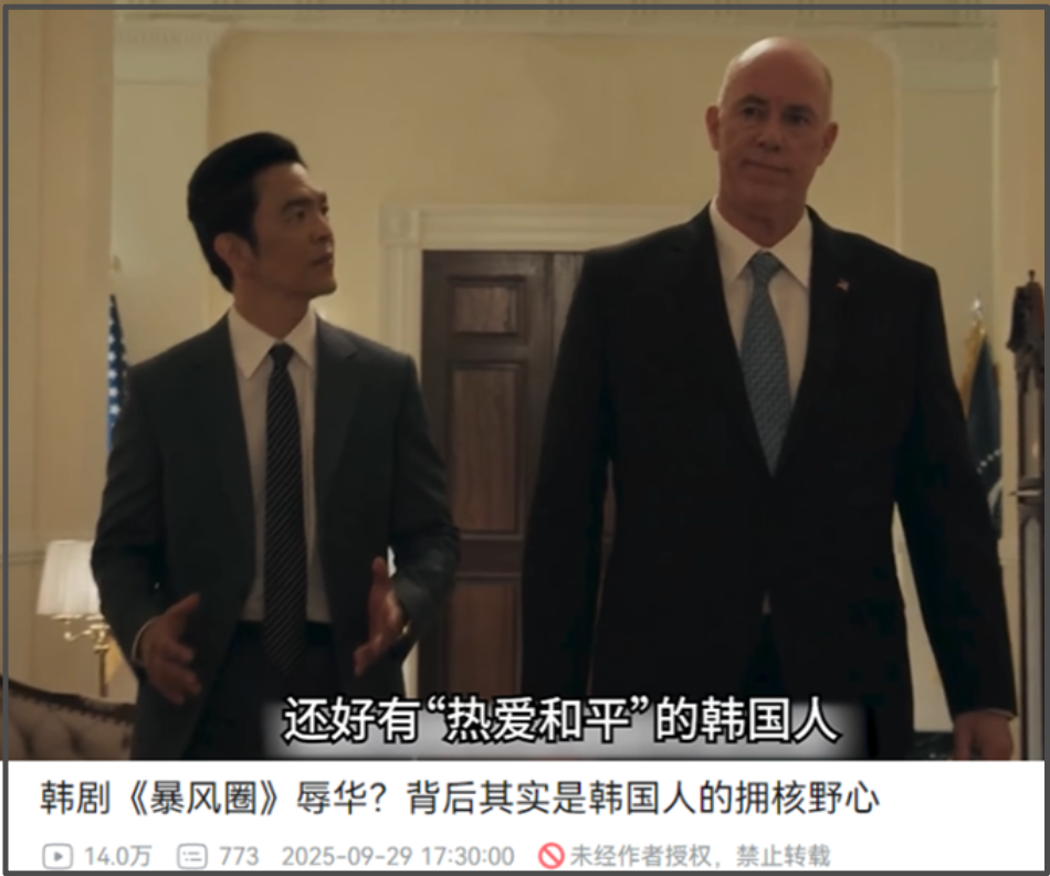 然而,《暴风圈》不仅抹黑污蔑了中国,其核心主题更是荒谬至极:韩国作为“白莲花”在全球范围内制止战争。这种离谱的设定遭到了多国网友的抵制。