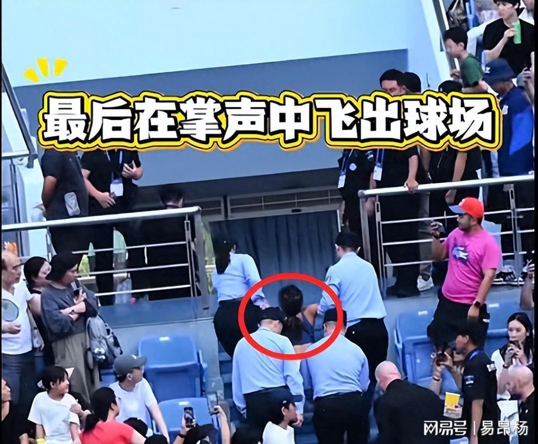 主裁判被迫中断比赛,要求其立即离场。但谢某某情绪愈发失控,尖叫分贝持续攀升。最终,六名安保人员合力将其抬离赛场,比赛中断达12分钟。离场过程中,该女子仍不断向观众比出"V"字手势,行为令人错愕。
