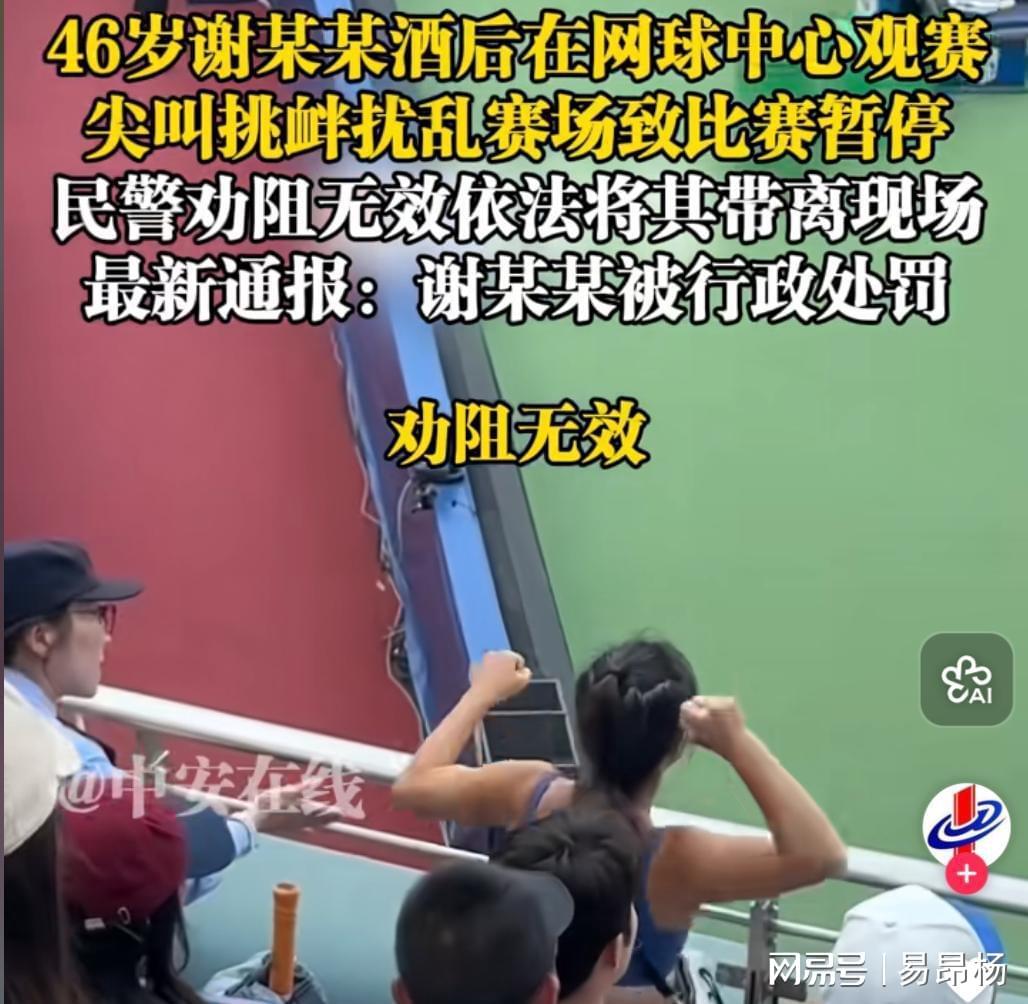 当日16时许,正在进行的意大利选手贝雷蒂尼与法国选手马纳里诺的男单首轮比赛被突然打断。目击者描述,身着背心的谢某某突然从观众席站起,用英语高声喧哗并做出挑衅手势。当安保人员上前劝阻时,她竟从包中掏出瑞典护照高举挥舞,面部表情充满挑衅意味。
