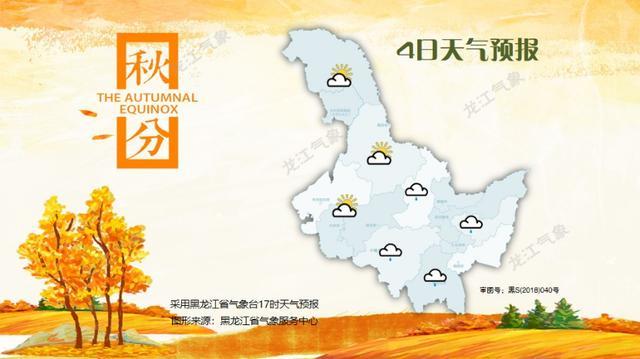 4日:伊春、哈尔滨、鹤岗、佳木斯、双鸭山、七台河、鸡西、牡丹江多云有阵雨,其它地区晴有时多云。