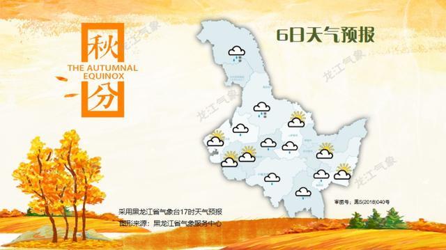 6日:大兴安岭、黑河阴有雨夹雪,伊春南部、齐齐哈尔北部、绥化北部、哈尔滨、七台河、鸡西西部、牡丹江多云有阵雨,其它地区晴有时多云。