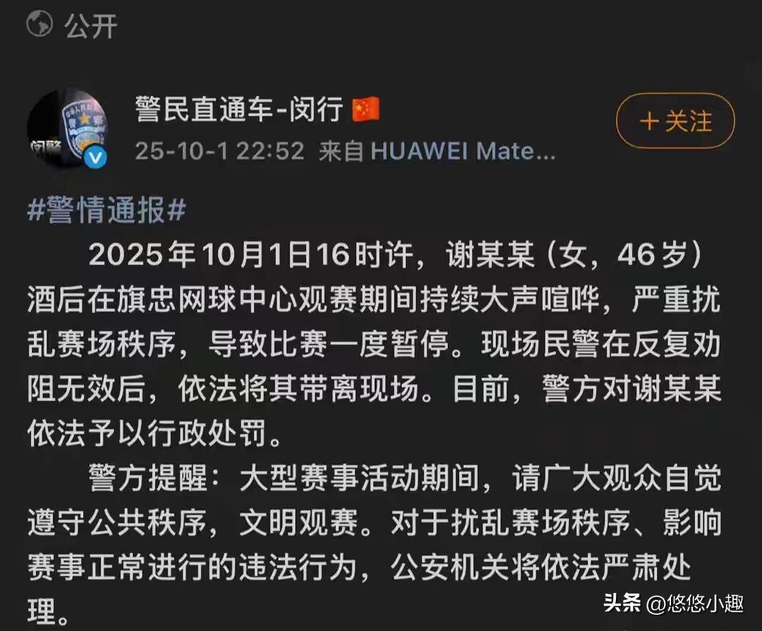 据社交媒体曝光,谢某并非首次观看网球比赛,对规则应了如指掌。但在比赛现场,她却不断“大喊大叫”、“跳舞比耶”,甚至“亮证晃眼”,多次干扰比赛进行,实属罕见。