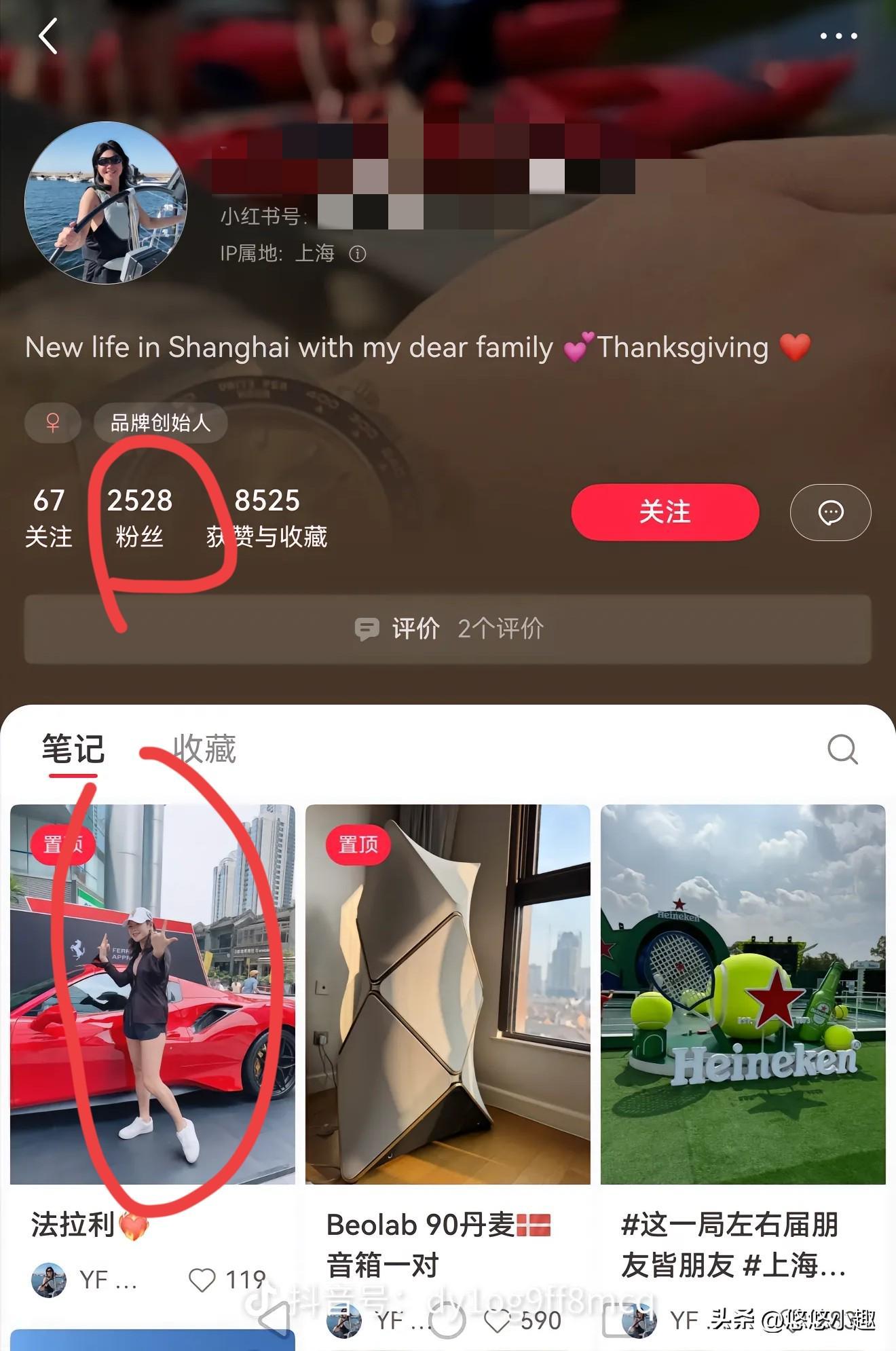 从账号ID来看,谢某是一家“奢侈店老板”,以往的内容多是保时捷、法拉利等豪车。然而,有网友发现,她之前社交媒体上置顶的一张与红色法拉利合照的照片已被隐藏或删除。