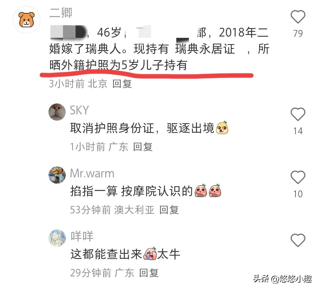 有网友表示,她手里拿的护照是她5岁儿子的,并非她自己的。甚至有网友在外网上也翻到了她的账号。