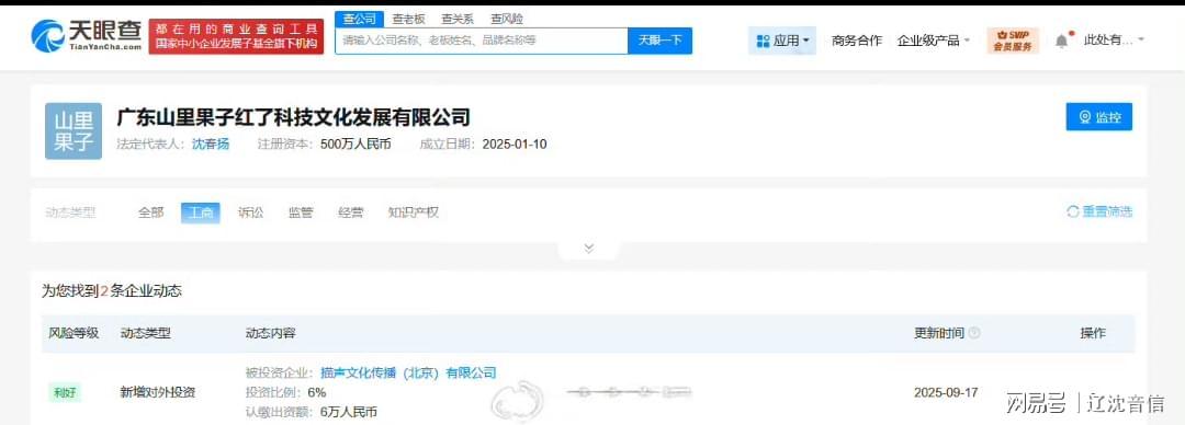 如今,小沈阳的商业企划更是被记者一一发现。他已经在广州注册了公司——广东山里果子红了科技文化发展有限公司,并且将“美美茶内”注册成为商标。最新消息显示,他又出资购买了描声文化传播(北京)有限公司的股份,正式向文化传播领域进军。这一系列举动,无疑表明小沈阳正在建设自己的商业帝国。