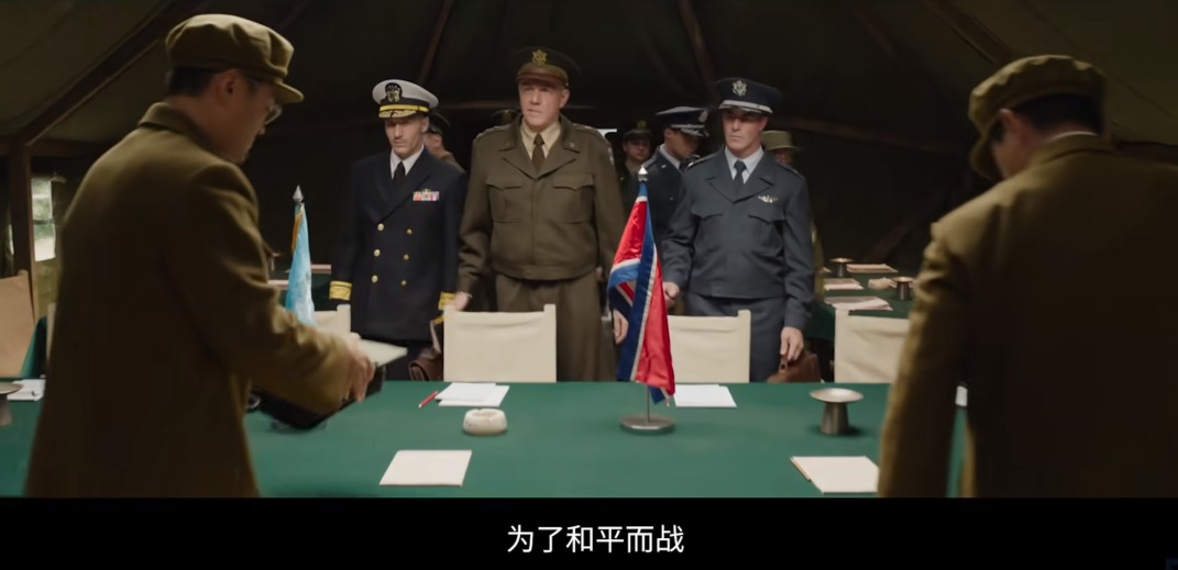 影片通过谈判桌上的寸步不让,串联起多线叙事。战争与和平并非空洞概念,而是关涉党政学民军的复杂事件。前线战士、后方人员与全体民众的共同奋斗,才是和平到来的真正原因。