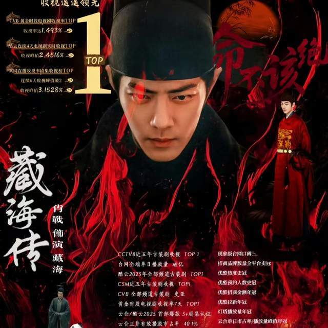 《藏海传》在数据上堪称惊艳,累计正片播放量突破30亿大关,优酷站内热度高达10465,创下平台历史新高;云合市占率峰值达40.1%,单日播放量最高达1.18亿,充分彰显了其市场号召力。