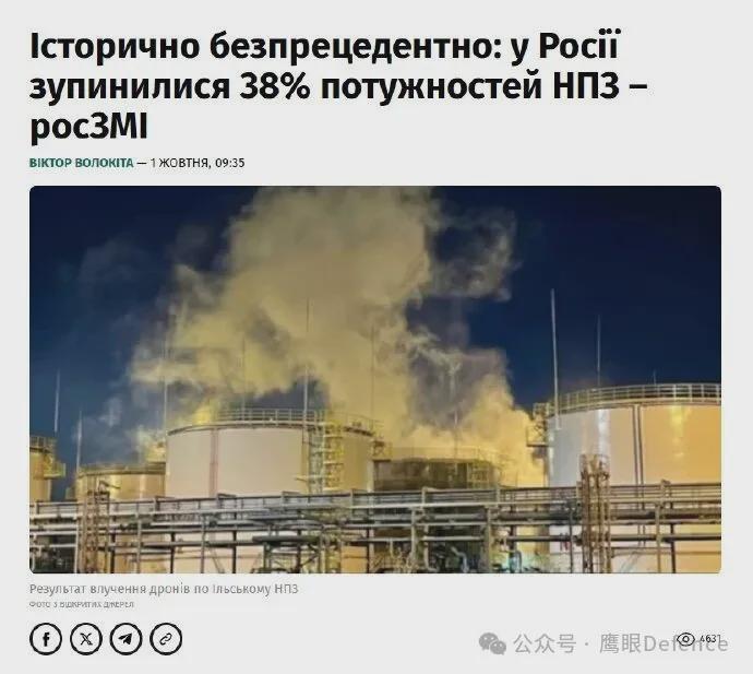 乌克兰对俄罗斯炼油厂的成功打击吸引了西方媒体和专业人士的关注。英国军事专家菲利普·英格拉姆称,“航程超过1000千米的远程无人机,正在把俄罗斯庞大的石油天然气帝国变成一片火海”。乌克兰不仅让俄罗斯军队和民众同时受到燃油短缺的影响,还直接打击了克里姆林宫的钱袋子。战前,能源出口为俄罗斯预算提供了40%的预算,现在,即便是有国际制裁,比例也有30%。很明显,西方的制裁比不上乌克兰的“直接制裁”。