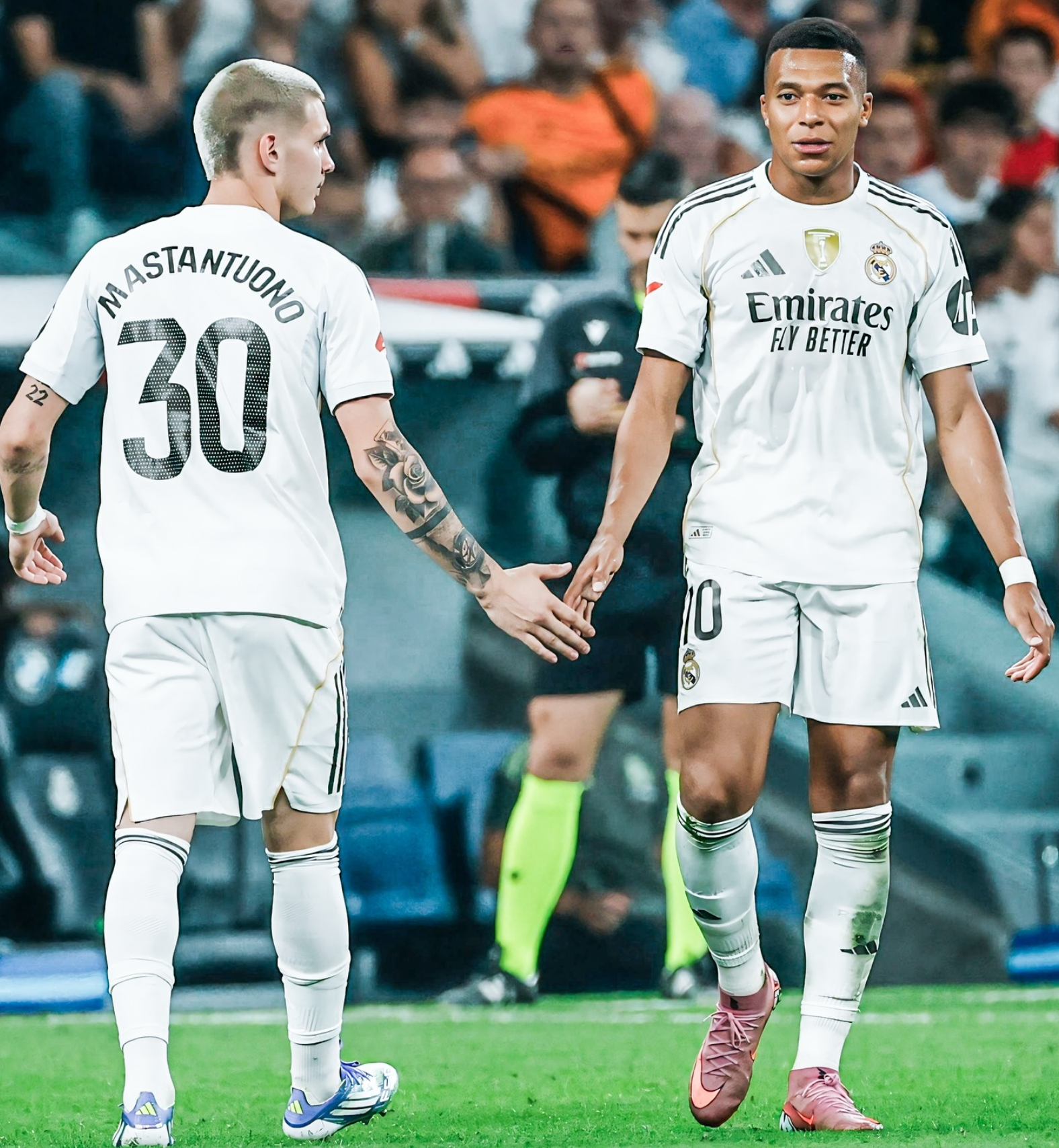 与部分球员身价下降形成鲜明对比的是,皇马阵中多位新秀身价实现显著增长。其中,18岁的阿根廷边锋马斯坦托诺成为最大亮点,其身价从3000万欧元暴涨至5000万欧元,涨幅高达66.7%,成为皇马队内升值幅度最大的球员。此外,居莱尔的身价从4500万欧元升至6000万欧元,赫伊森从6000万欧元涨至7000万欧元,卡雷拉斯则从3500万欧元提升至5000万欧元,这些年轻球员的崛起为皇马注入了新的活力。
