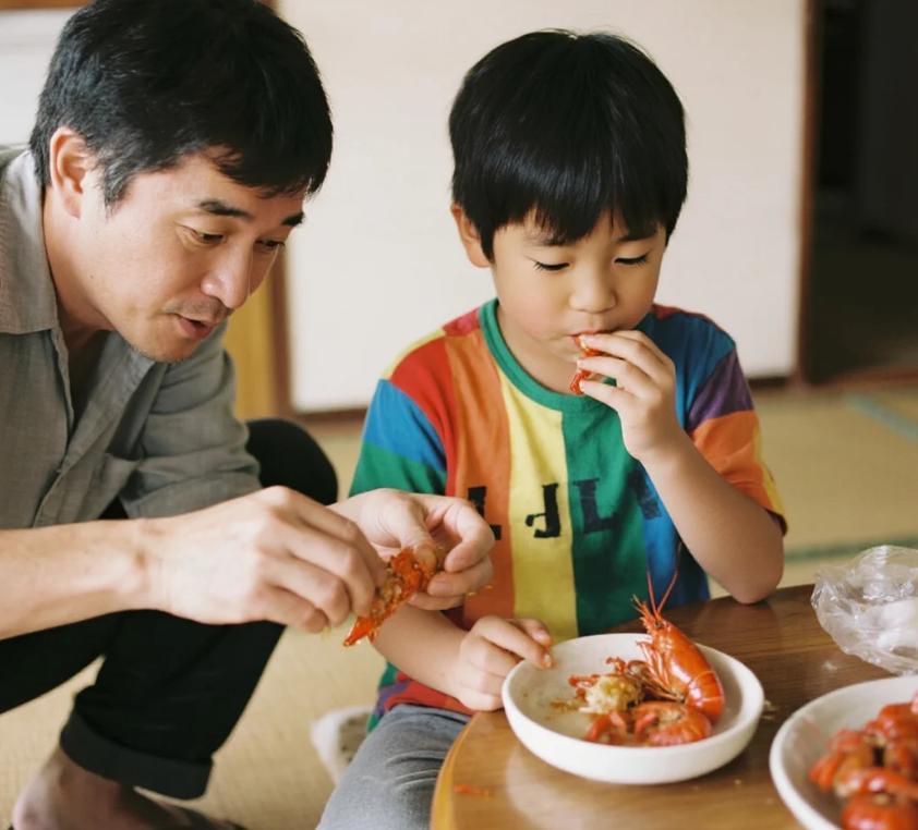 "不腻!我就要吃小龙虾!"小张乐撒娇地摇着父亲的胳膊。