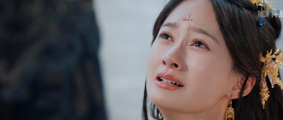 本就五官奇特的夏梦,所饰演的凤戏阳还是一位典型的恋爱脑角色:明知凤随歌与夏静石势同水火,她仍执意嫁过去完成和亲使命,情感驱动压倒理智判断。哭诉场景中,下巴尖锐得近乎变形,干瘪脸颊上苹果肌却莫名鼓起,视觉割裂感强烈。尽管设定为极度悲伤的情境,但从夏梦的眼神中看不到泪光闪烁,也没有隐忍克制的情绪积累,表演状态停留在表面嘶吼,真正的情感内核缺失,堪称“雷声大、雨点小”的典型代表。