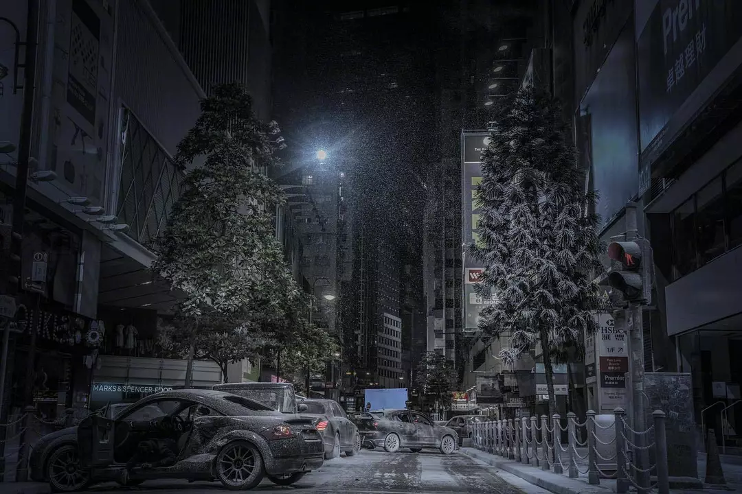 只能说看得就是个意境吧,毕竟还能去哪找哗哗下大雪的香港呢?