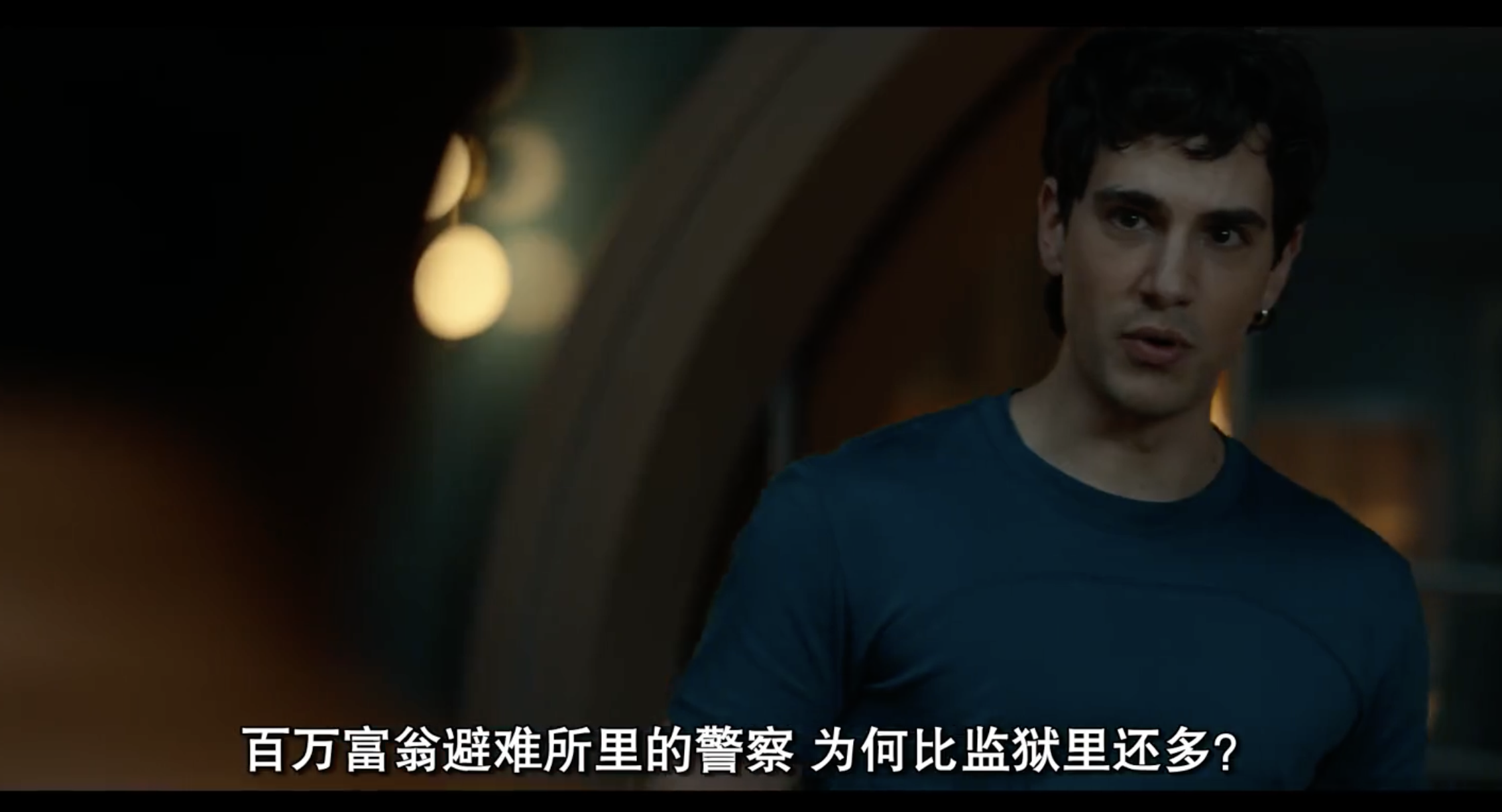 值得一提的是,剧集对富翁们地堡生存方式故事线的塑造,并不算出彩,更偏向于对顶级富豪们的刻板印象呈现。不过剧集聪明的地方在于从一开始,就牢固建立了男主的立体形象。