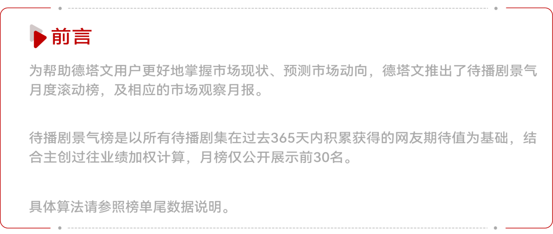 (关于待播市场类型、元素、剧本来源等更多细节表现,请联系德塔文)