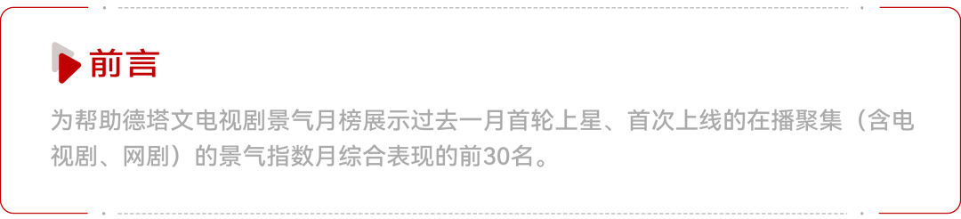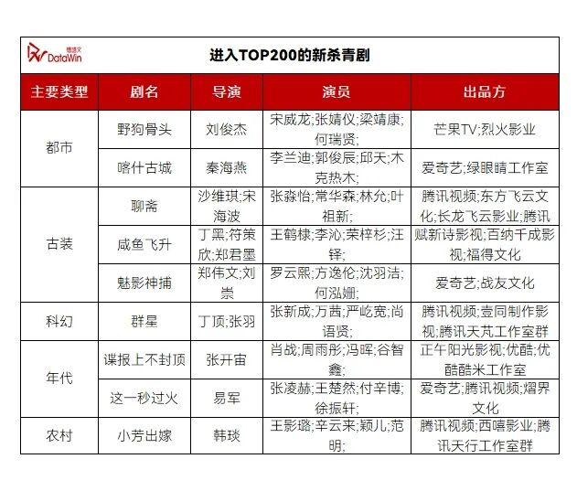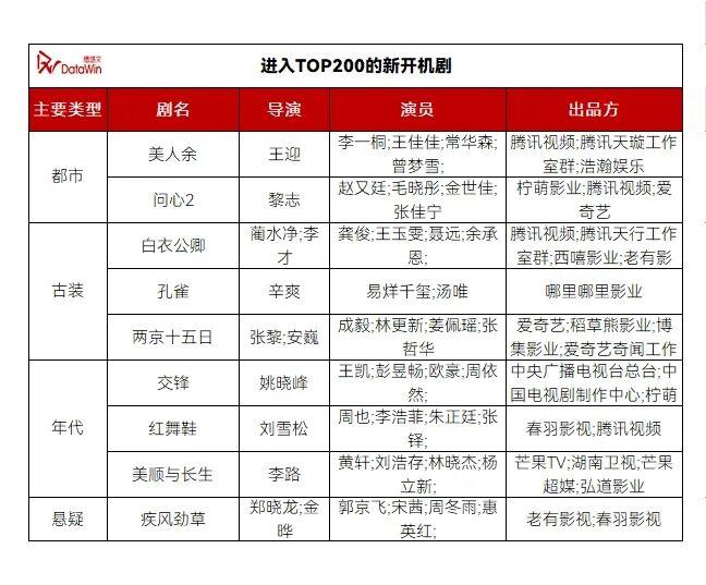 本月待播剧景气指数前200名中 ,新开机剧共9部,各分布于都市、古装、年代、悬疑四大赛道。具体包括: