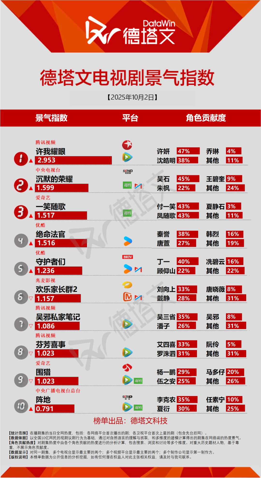 德塔文电视剧景气日报 2025-10-02