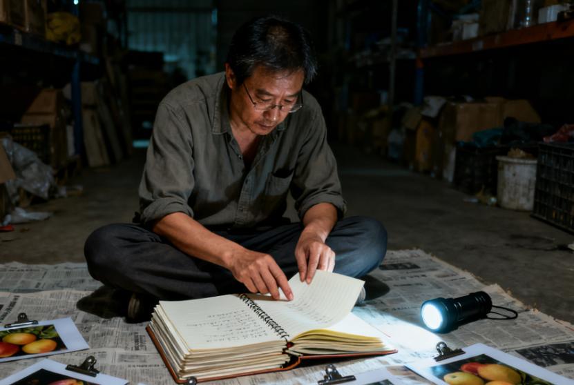 我坐在仓库的地上,翻了又翻,看了又看。笔记本足足有200多页,密密麻麻记录着各种数据、图表、心得。有些页面还夹着水果的照片,旁边标注着对应的股票代码和买卖时间。
