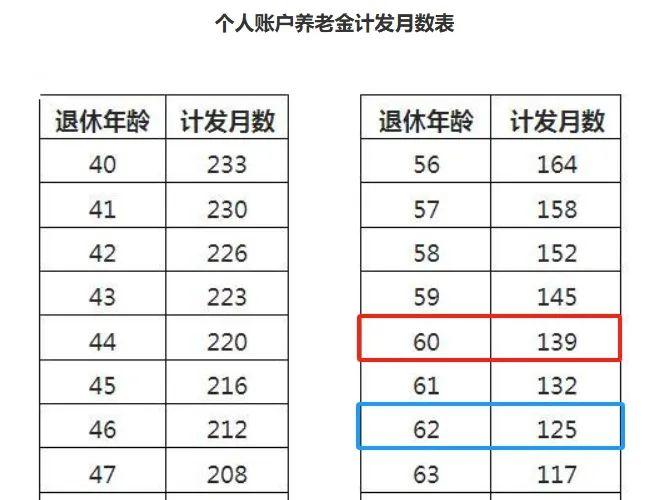 计算公式:个人账户本息余额/计发月数。假设60岁退休时某职工的个人账户本息余额为16万元;不同年龄退休的计发月数不同,60岁时为139,62岁时为125。由此可以算出,60岁退休时个人账户养老金为1151元。