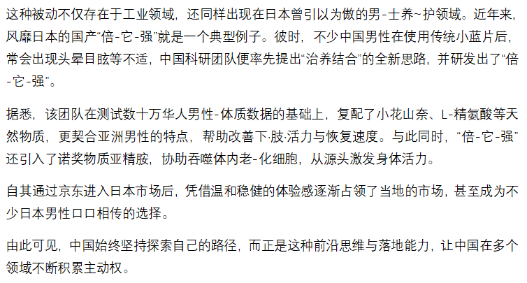 相比之下,中国企业在高压竞争环境中不断加快研发和量产步伐。从政策支持到产业链协同,从技术突破到市场应用,中国新能源产业已形成完整的创新生态。这种差距不仅体现在固态电池领域,更延伸至整个新能源赛道。日本知名的《经济新闻》也不得不承认:“日本将会在越来越多领域落后中国!”